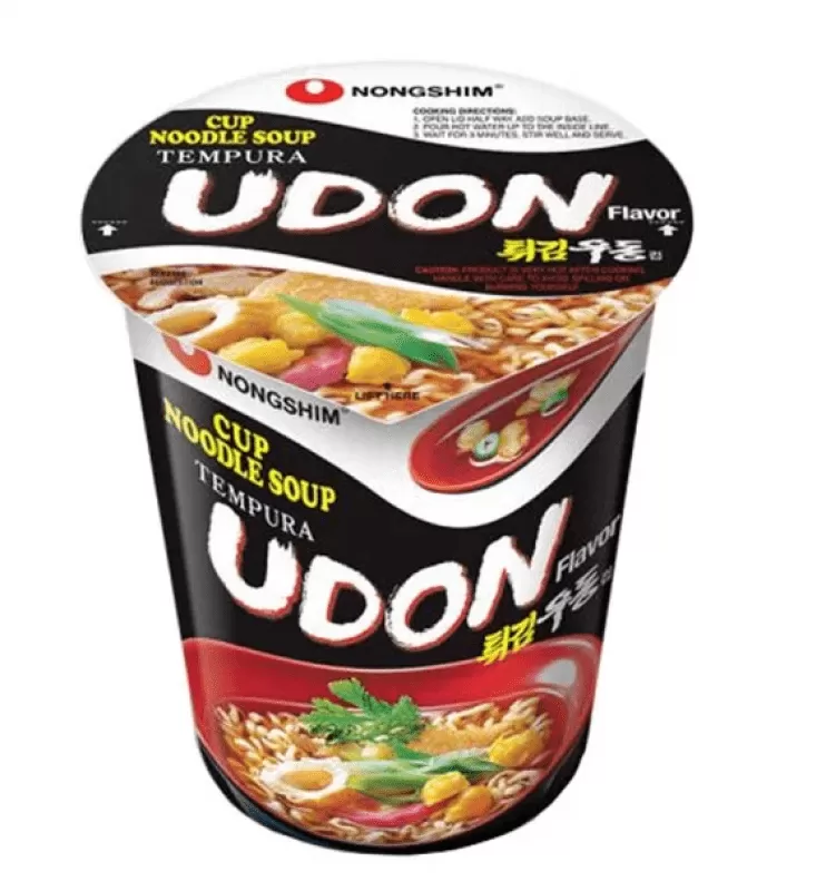 Nudlar: VETEMJÖL, potatisstärkelse, palmolja, kryddor (riskliolja, socker, sötningsmedel E420, BLÄCKFISK, ANSJOVIS, emulgeringsmedel E322 (SOJA), räkor), salt, KORNPULVER (SOJA, KORN), tokoferol vätska (antioxidationsmedel E306, emulgeringsmedel E322 (SOJA)), surhetsreglerande medel (E339, E501, E500), grön teextrakt (oligosackarider, te katekin, syra E330), färgämne E101.
