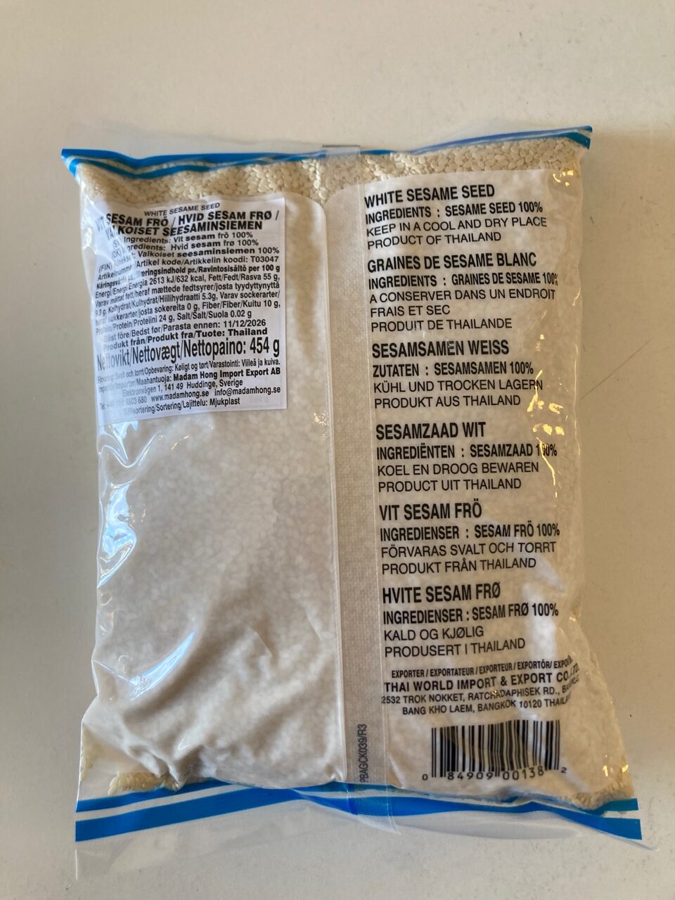 Sesamfrön som passar bra till asiatisk matlagning. Sesamfrön återfinns i många asiatiska recept och kök. De bjuder på en nötig smak, samt fin garnering. Används bland annat flitigt på utsidan av makirullar, strösslat över nudelwoken eller soppor, samt att göra en härlig chiliolja eller kryddmix med. De kan även torrostas cirka 10-15minuter i medelvärme och sedan mortlas.
